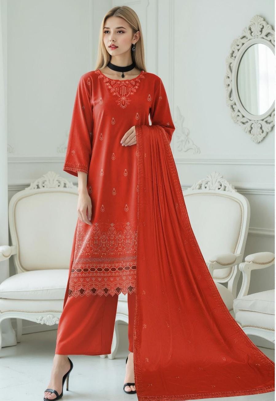 Jade 3 Pc Unstitched Luxury Dhanak Heavy Embroidered Suit