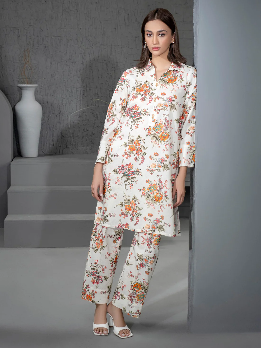Limelight Digital Printed Fancy Linen 2 Piece Suit White