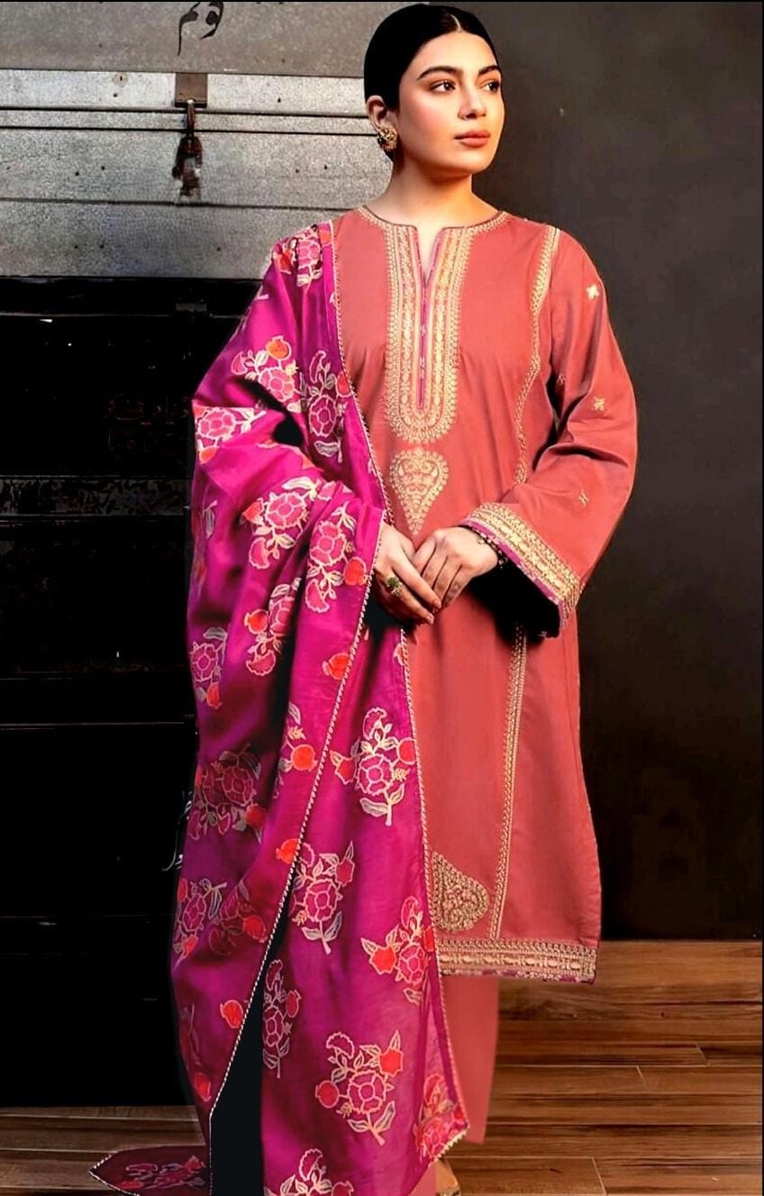 Jade 3 Pc Unstitched Luxury Dhanak Heavy Embroidered Suit